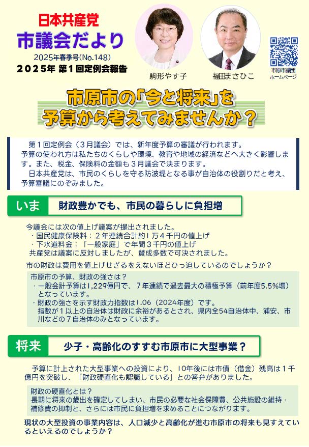 市議会だより(No.148)①「市原市の『今と将来』を予算から考えてみませんか?」」