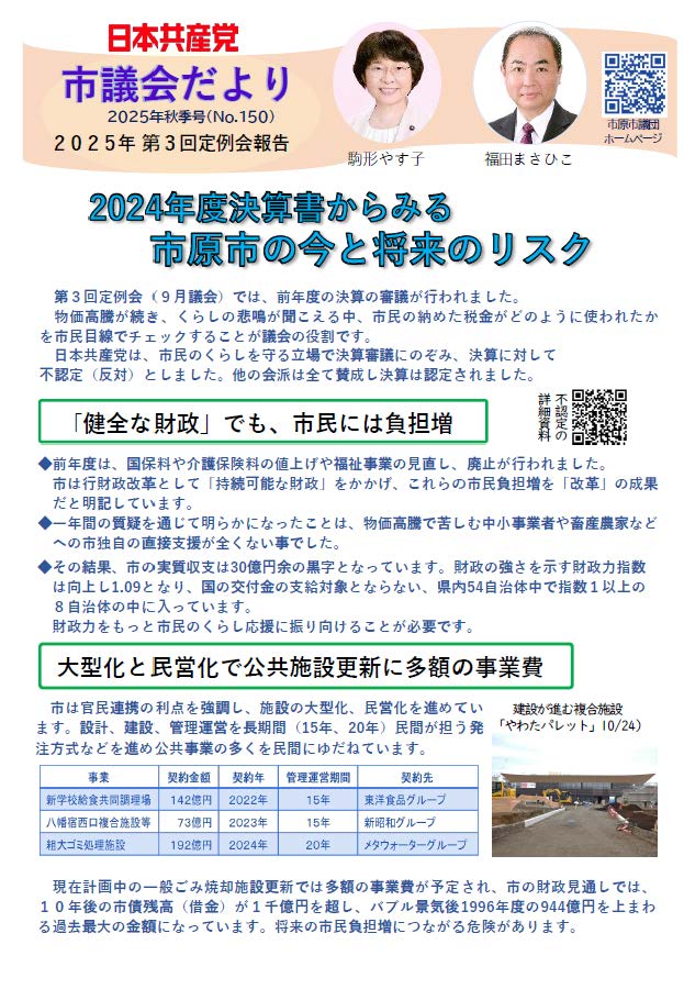 市議会だより(N0.150)①2024年度決算書からみる市原市の今と将来のリスク