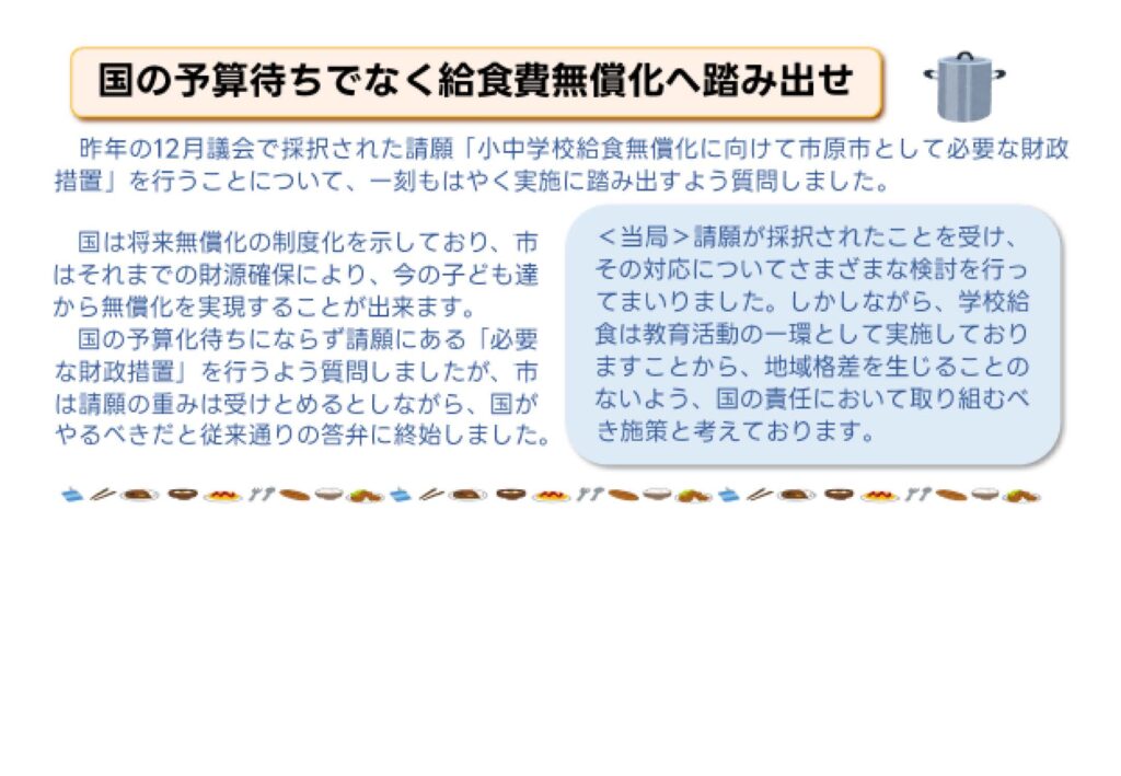 市議会だより(No.150)④国の予算待ちでなく給食費無償化へ踏み出せ