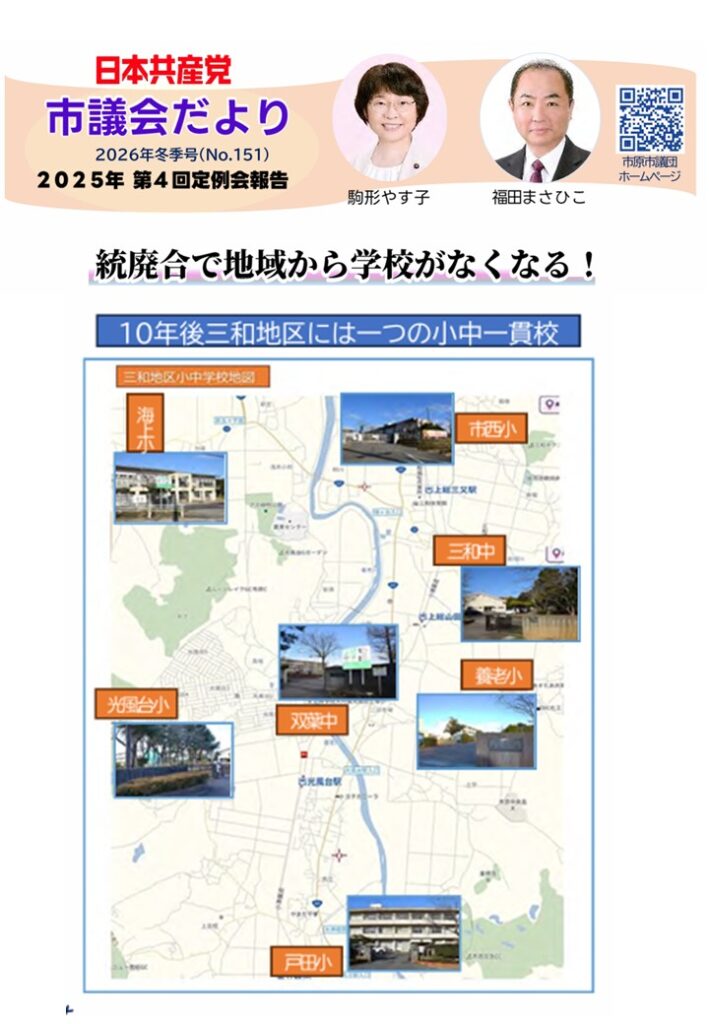 市議会だより(No.151)①統廃合で地域から学校がなくなる!