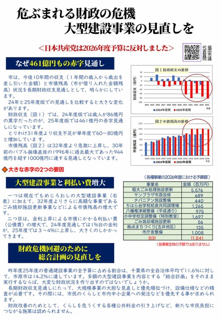 市議会だより(No.152)②危ぶまれる財政の危機ー日本共産党は2026年度予算に反対しましたー