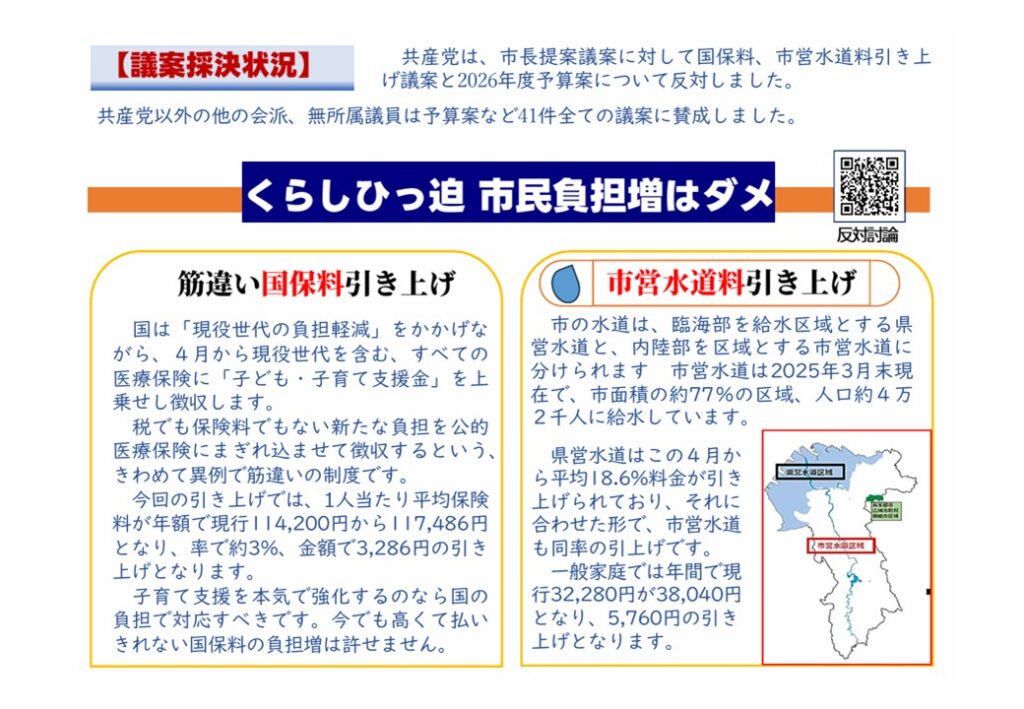 市議会だより(No.152)③くらしひっ迫 市民負担増はダメー料金引き上げ2議案に反対ー