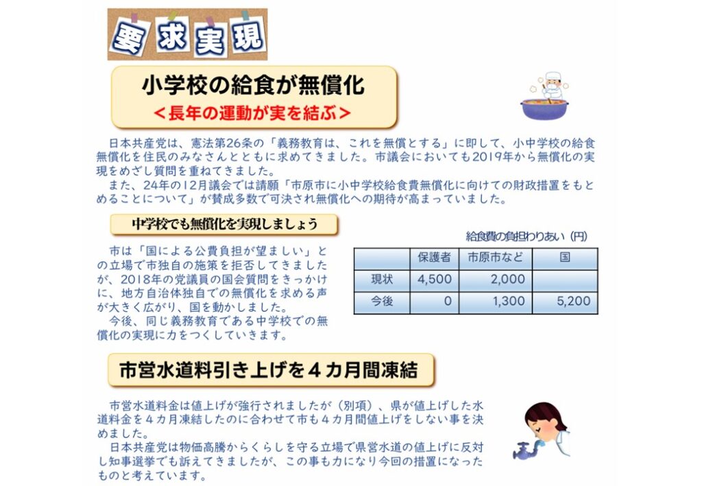 市議会だより(No.152)⑤要求実現ー小学校給食無償化、水道料金4か月間凍結ー
